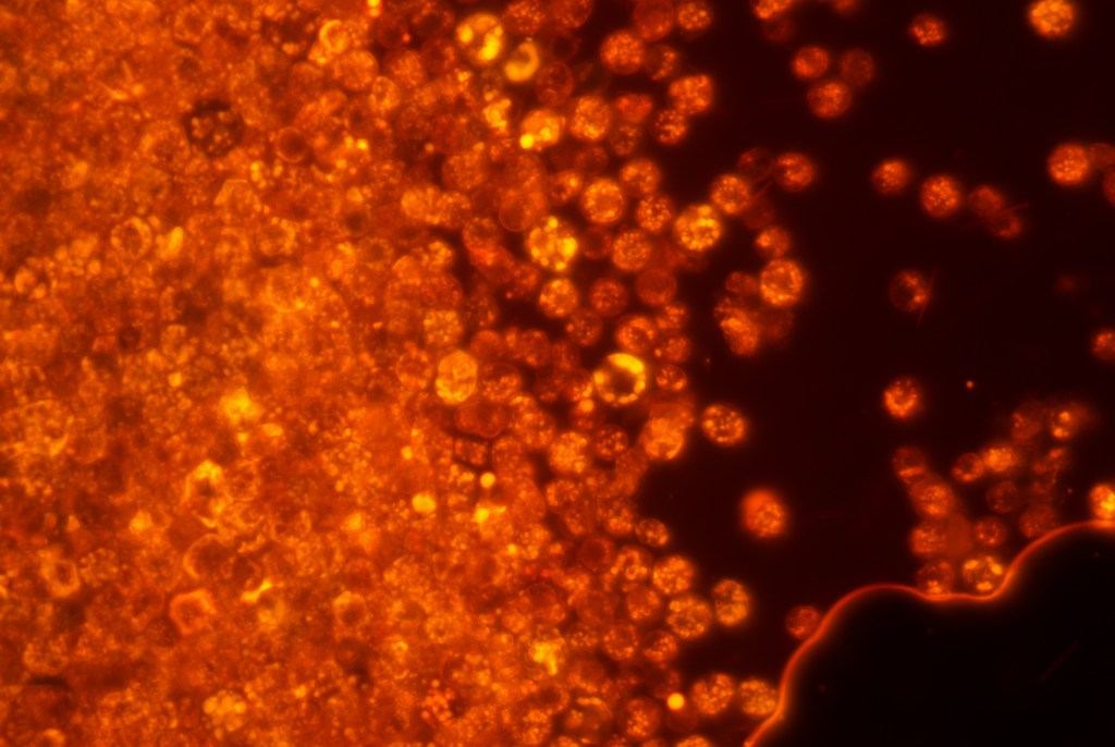 There are many types of stains used for algae, each revealing different features under the microscope. Using spectral microscopy, fluorescent dyes illuminate the cells in captivating ways, highlighting lipids or helping to distinguish species.
